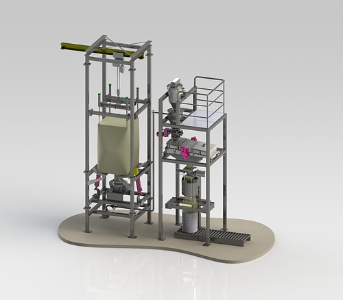 噸袋卸料站是用來(lái)實(shí)現(xiàn)袋裝散料的卸料功能,為半自動(dòng)設(shè)備,其工作原理及操作流程為: